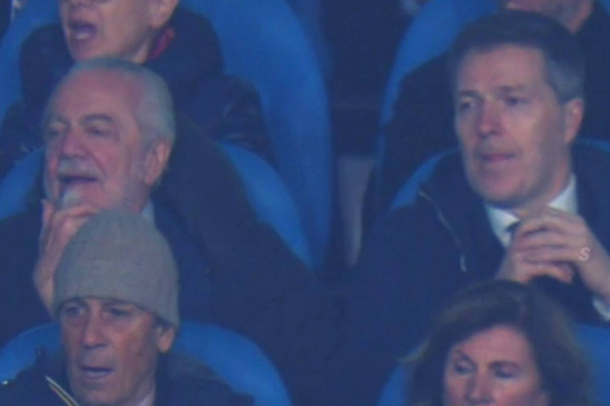 Anche Aurelio De Laurentiis a seguire il Napoli al Maradona contro il Barcellona: avete visto chi era seduto al suo fianco?