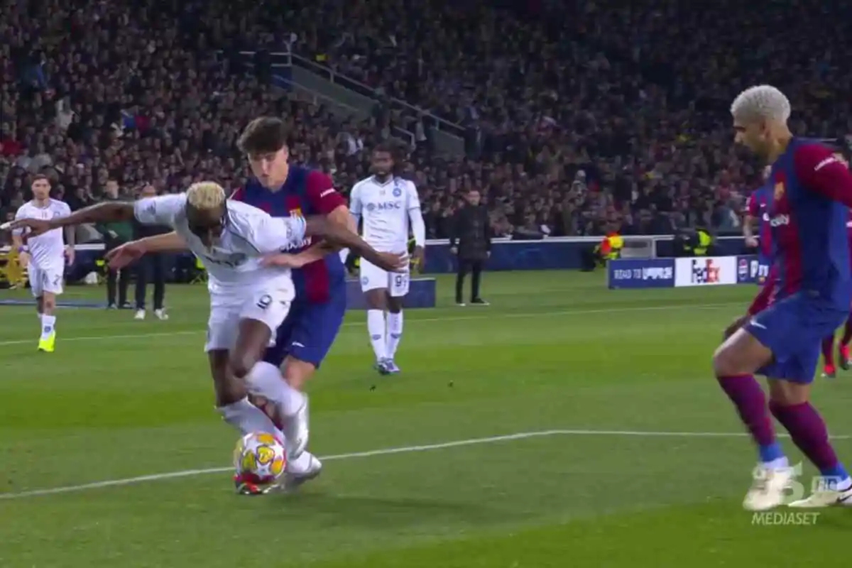 Dopo un avvio shock, il Napoli si è rimesso in corsa per provare a riacciuffare il Barcellona. Episodio dubbio nell’area di rigore blaugrana, con Osimhen finito a terra dopo un contatto con Curbasì.