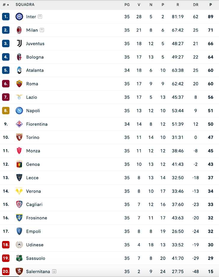 La stagione del Napoli non è stata entusiasmante, ed ad evidenziare il pessimo rendimento degli azzurri è il serio rischio di non partecipare a nessuna competizione europea nella prossima stagione. Gli azzurri devono fare il loro meglio in queste ultime tre partite per centrare la qualificazione in Europa o Conference League. Il discorso potrebbe però dipendere anche dalle altre squadre impegnate ancora in Europa, ossia Roma, Atalanta e Fiorentina.