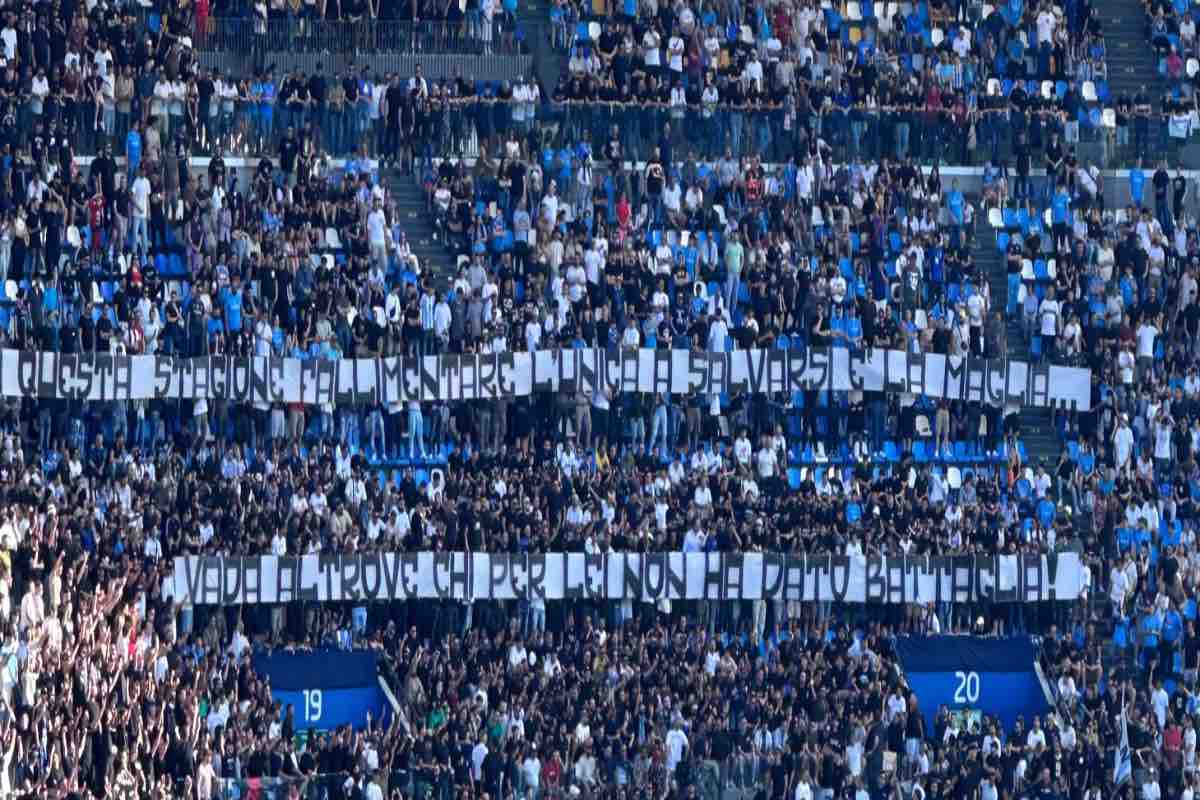 I tifosi azzurri continuano la contestazione nei confronti di società e squadra: striscioni e cori in occasione di Napoli-Lecce.