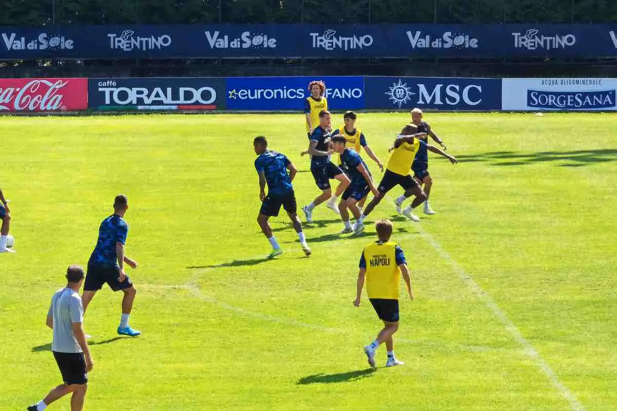Il ritiro di Dimaro, il primo dei due previsti per questa fase di preparazione estiva per il Napoli, è ormai alle battute finali. In seguito alla seconda amichevole contro il Mantova (vinta per 3-0, grazie alle reti di Lindstrom, Spinazzola e Cheddira), gli uomini di Antonio Conte tornano in campo per la seduta odierna di allenamento, prima di mettersi in viaggio per fare ritorno a Dimaro. Qualche giorno di break e poi sarà subito la volta di Castel Di Sangro, dove sono attesi anche i Nazionali reduci da Euro 2024 (si dovrebbe attendere ancora un po’ in più, invece, per Olivera).