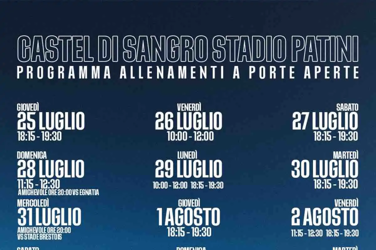 Nel programma, chiaramente, sono contemplate anche le amichevoli che la squadra azzurra giocherà a Castel di Sangro contro Egnatia, Brest e Girona. C’è grande entusiasmo attorno alla squadra azzurra, ed anche questa seconda parte di ritiro sarà importante per creare la giusta sinergia tra tifosi e squadra.