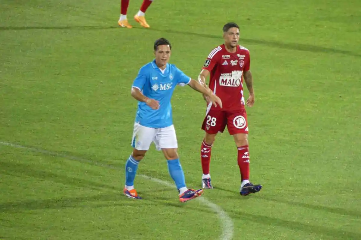 Il Napoli è in campo per la quarta amichevole pre-campionato contro il Brest, squadra rivelazione della Ligue 1 nello scorso anno con un clamoroso terzo posto. Il primo tempo si è chiuso con il risultato di 1-0, segnato pochi minuti prima del doppio fischio dell’arbitro da Giacomo Raspadori, schierato a sorpresa da Antonio Conte dal primo minuto.