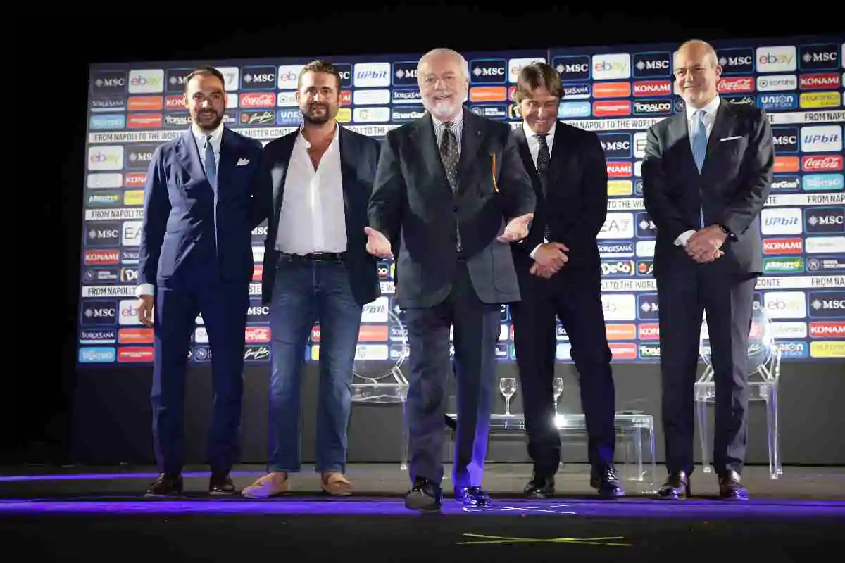 La dirigenza del Napoli nel giorno della presentazione di Antonio Conte - Lapresse - SpazioNapoli.it