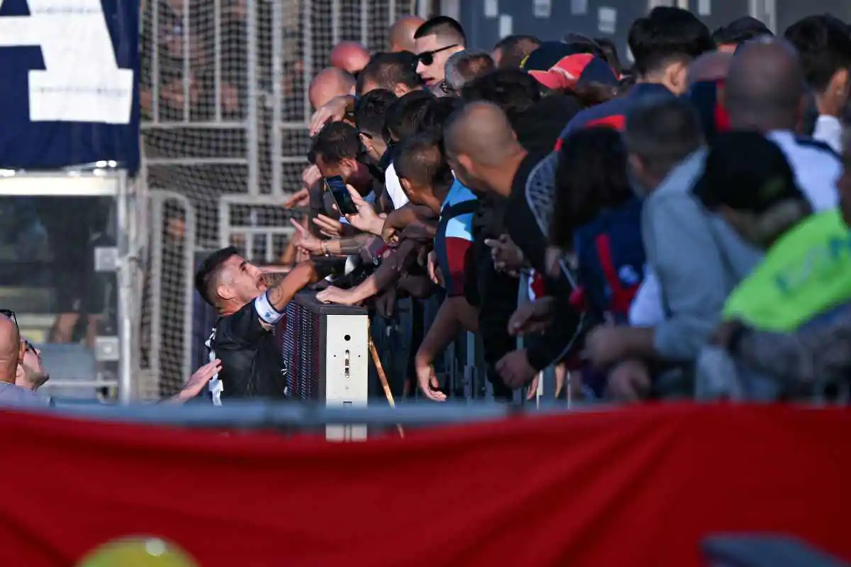 Da quel momento uno steward è rimasto ferito e la gara è stata sospesa per meno di 10 minuti. Persino il capitano Giovanni Di Lorenzo è andato a parlare con i tifosi del Napoli per cercare di calmarli. Anche Oriali, su invito di Conte, si è precipitato sotto i sostenitori partenopei con l’obiettivi di riportare la calma. Dall’altra parte ha fatto lo stesso Deiola, capitano dei rossoblu.