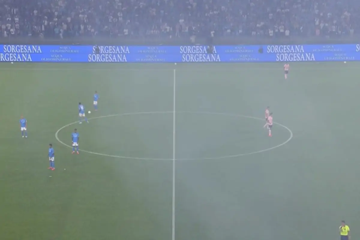 Secondo quanto ricostruito ad aver contribuito al ritardo del fischio d’inizio sono state continue esplosioni che hanno impedito all’arbitro di poter dare il via alla seconda frazione di gioco. Un gesto deplorevole che si è succeduto continuamente e che ha creato tensione all’interno dell’impianto sportivo di Fuorigrotta.