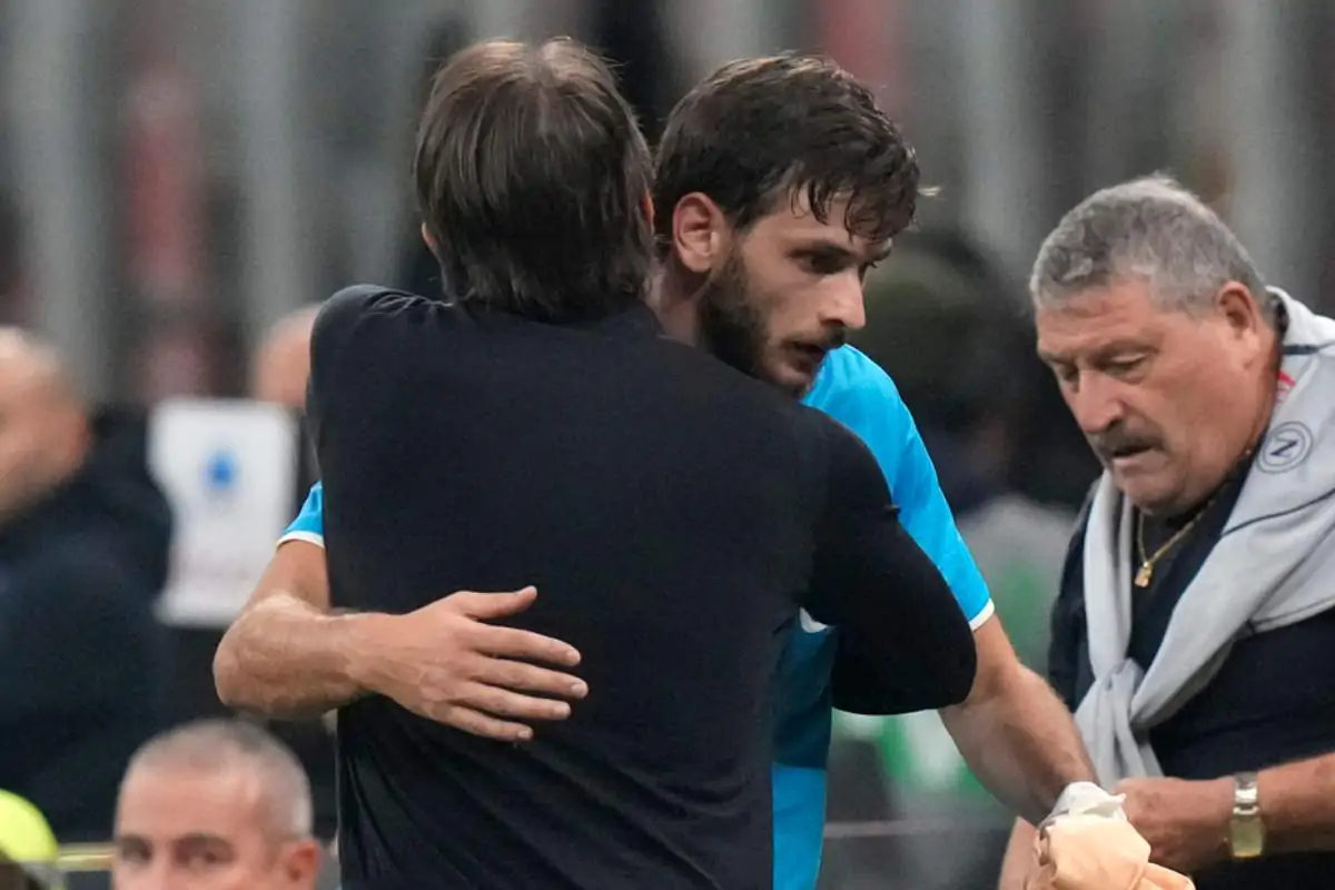 Khvicha Kvaratskhelia abbraccia Antonio Conte (LaPresse) - SpazioNapoli.it