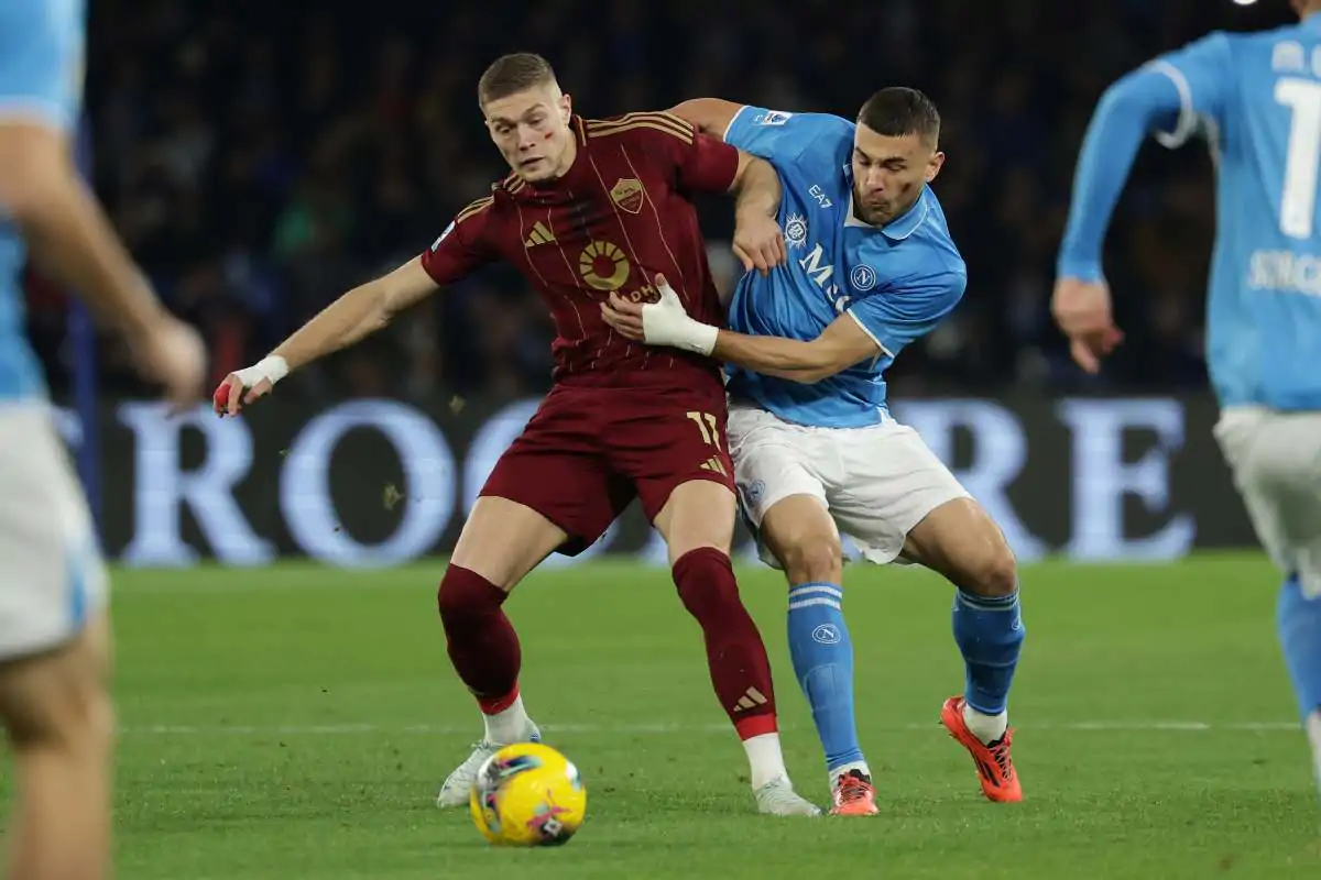 Il primo tempo fra Napoli e Roma si è concluso sul punteggio di 0-0. Nessuna emozione particolare durante i 45 minuti di gioco se non il colpo di testa di Khvicha Kvaratskhelia nel corso del primo minuto di gioco quando, servito dalla fascia opposta, non è riuscito ad indirizzare il pallone verso la porta di Svilar. La passività della Roma d’altro canto, non ha soddisfatto Claudio Ranieri che ha deciso di metter mano alla squadra già nel corso dell’intervallo.