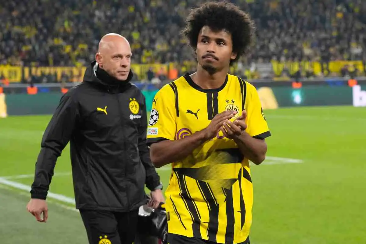 Karim Adeyemi a bordocampo con la maglia del Borussia Dortmund (LaPresse) SpazioNapoli.it