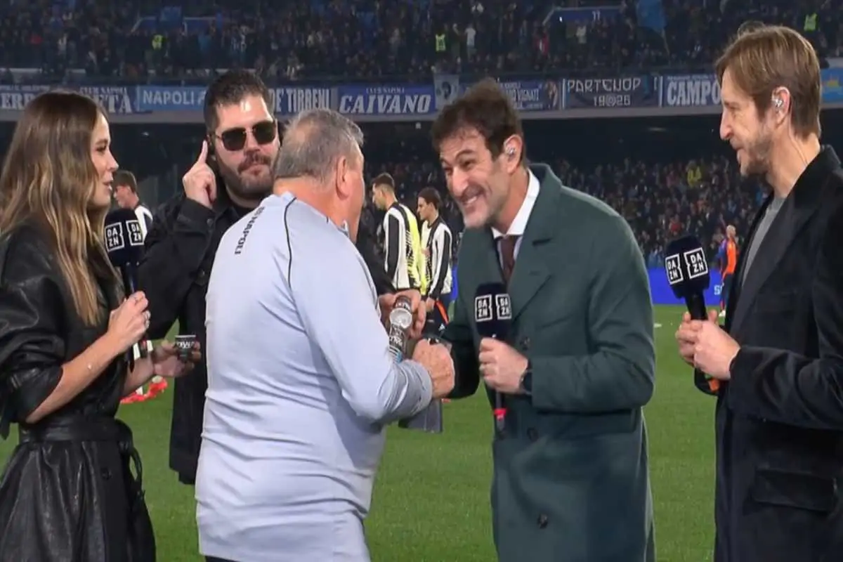 Lo storico magazziniere del Napoli, noto per la sua grande allegria e del suo modo di essere, a pochi minuti dalla super sfida ha fatto irruzione durante la trasmissione di Dazn a bordo campo per fare gli onori di casa. Tommaso Starace si è intrufolato nella diretta, versando agli opinionisti di Dazn il suo immancabile e inconfondibile caffè.