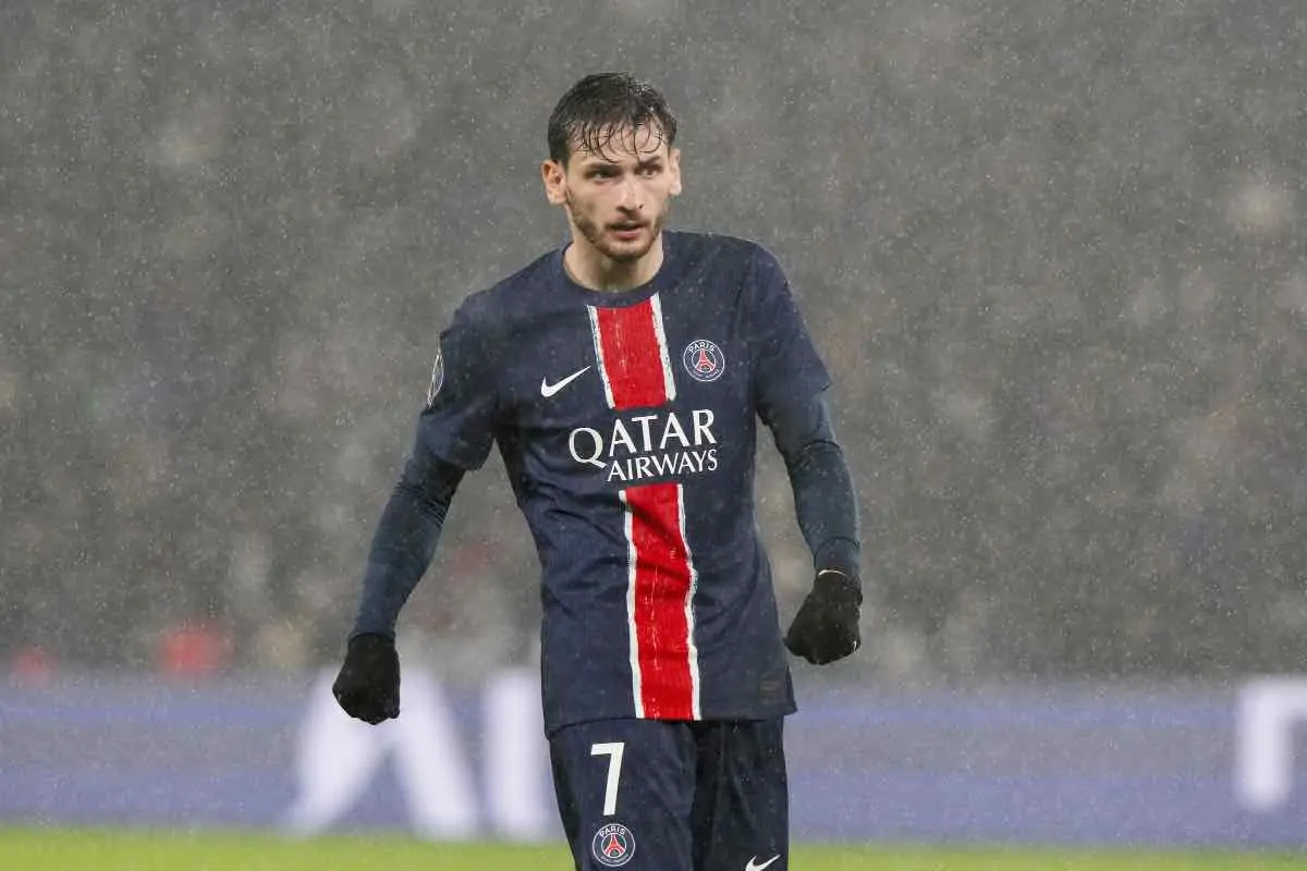 Khvicha Kvaratskhelia in campo con la maglia del Paris Saint Germain (LaPresse) SpazioNapoli.it