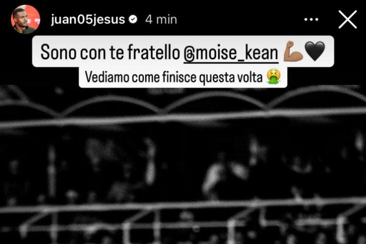 Messaggio tra l’altro anche da parte di Juan Jesus. Il difensore del Napoli ha infatti pubblicato la storia Instagram qui riportata in foto. Anche il brasiliano ci ha dunque tenuto ad esprimere la sua vicinanza a Moise in questo momento. Con quel “Vediamo come finisce questa volta“, accompagnato da quelle emoji, si può percepire tutto il disappunto per un problema di sfondo culturale ancora fin troppo radicato nel nostro Paese. Con le istituzioni che non sempre riescono a combatterlo in maniera tempestiva e uniforme.