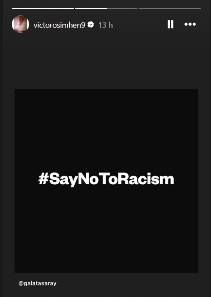 Il Gala ha denunciato Mourinho per frasi razziste e Osimhen ha ripubblicato l’immagine con la dicitura “SayNoToRacism” anche nelle proprie storie Instagram. Una risposta chiara all’episodio di ieri.