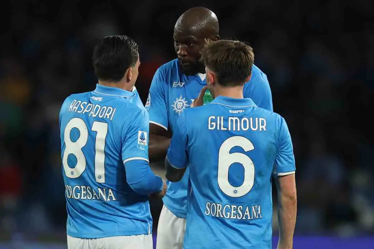 Lukaku, Raspadori e Gilmour discutono durante la sfida tra Napoli ed Inter (LaPresse) SpazioNapoli.it
