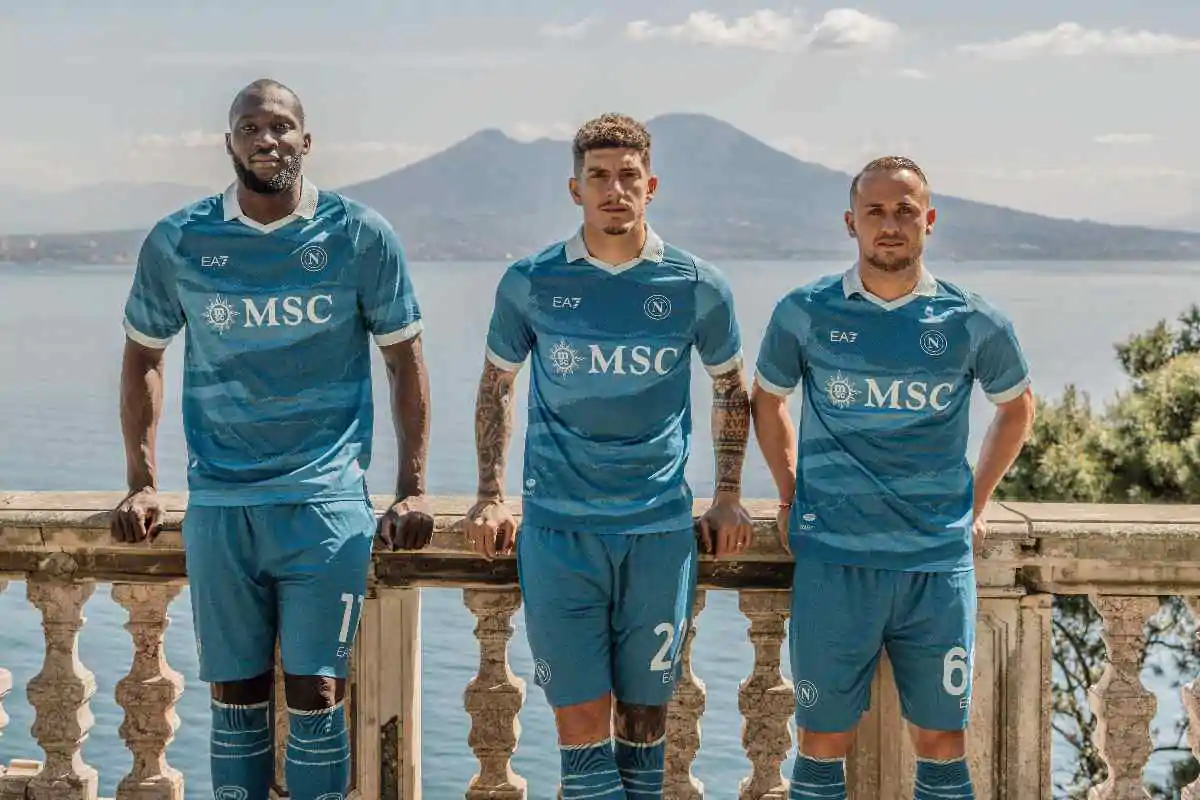 “Il pattern della nuova maglia trae ispirazione dalle origini di Napoli, fondendo in un unico disegno la storia del club, la cultura della città e l’anima del suo mare. La maglia gara prevede una texture realizzata in jacquard, stampata in sublimatico, e i colori che caratterizzano il kit sono l’azzurro celestiale mixato con il turchese chiaro. Anche le numerazioni saranno completamente texturizzate con richiamo al design della maglia. La maglia, frutto della collaborazione con EA7, sarà prodotta in 2.500 pezzi a tiratura limitata per omaggiare la fondazione storica della città”.
