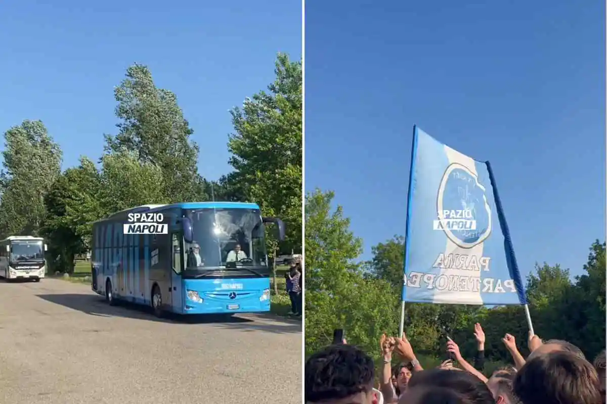 Le immagini dell’arrivo del Napoli all’hotel dove risiederà a Parma mostrano una vasta di quantità di tifosi lì in attesa per far sentire tutto il loro calore. Tantissimi i cori per i giocatori azzurri: una vera e propria accoglienza “da stadio” quando manca ancora un giorno alla partita!