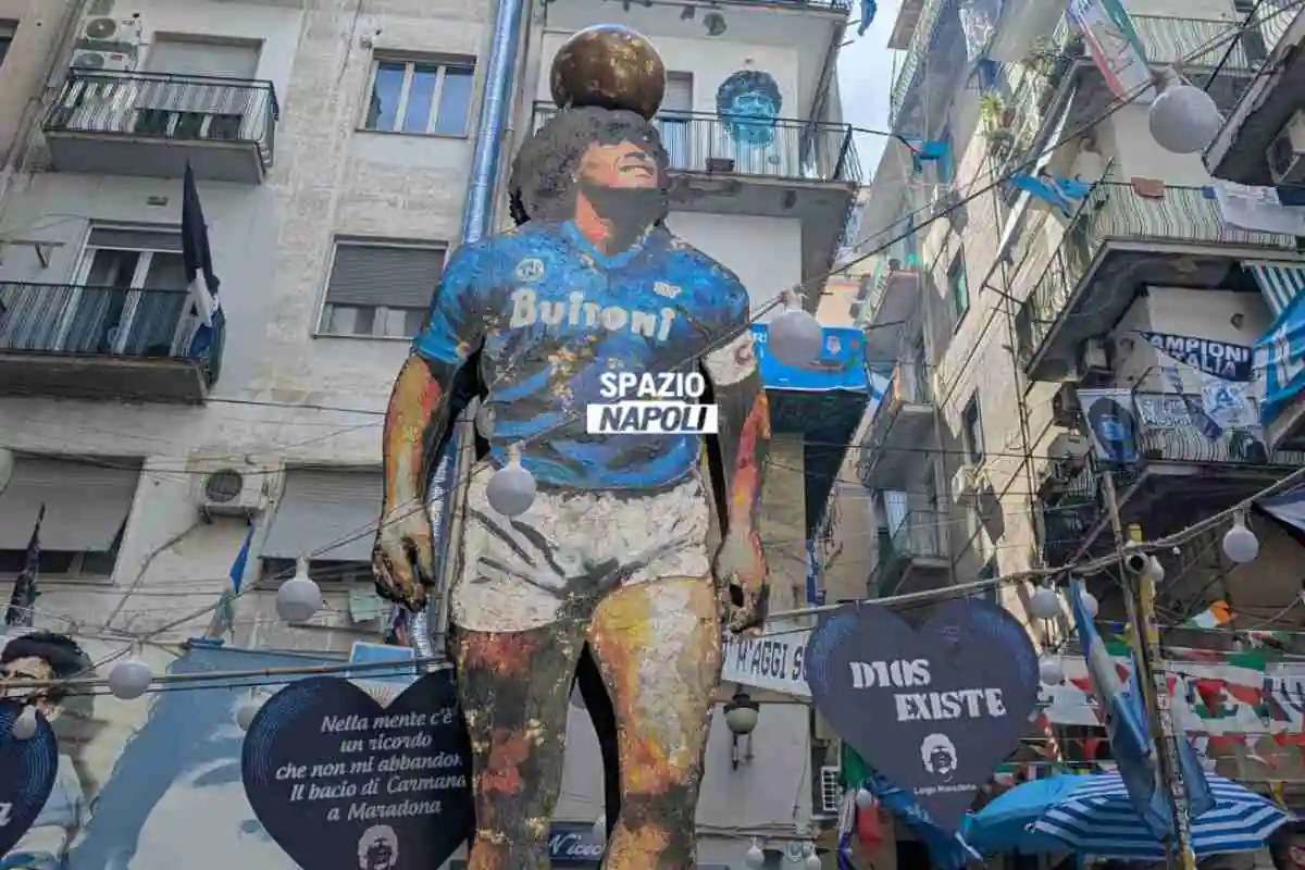 La città si è risvegliata con il sorriso, ovviamente. È stata una serata di festa, terminata in tarda notte. E la festa proseguirà lunedì 26 maggio con il passaggio dei pullman scoperti per le strade cittadine. Proprio in occasione della vittoria dello Scudetto, tantissimi appassionati, curiosi e turisti, si sono recati verso Largo Maradona, all’interno dei Quartieri Spagnoli. Un pellegrinaggio per omaggiare Diego Armando Maradona e il suo murales, ormai diventato luogo di culto. Proprio qui, è stata ubicata una nuova statua.