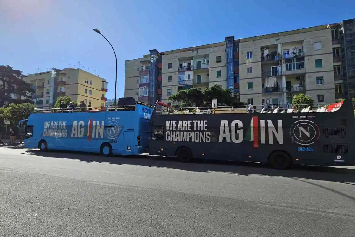 Oggi è una giornata molto importante per Napoli e il Napoli. Dopo il successo ottenuto nella giornata di venerdì, il club azzurro si prepara a festeggiare nuovamente il tricolore assieme ai tifosi. A differenza di quanto accaduto due anni fa, questa volta è previsto il pullman scoperto che attraverserà alcune vie della città.