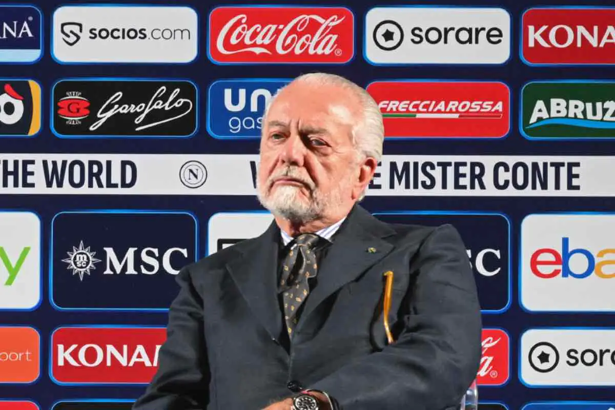 Le parole del presidente del Napoli dal ritiro di Dimaro, ecco cosa ha detto su De Bruyne e Conte.