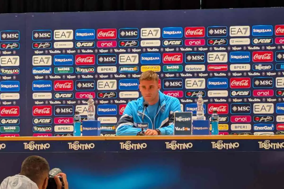 Lorenzo Lucca, neo acquisto del Napoli, si presenta ufficialmente in conferenza stampa per la prima volta da giocatore del Napoli. Di seguito la conferenza stampa: