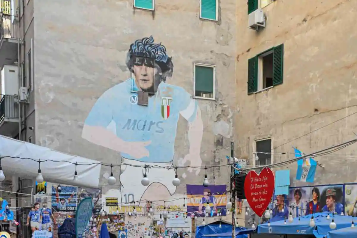 Nei giorni scorsi il celebre murale ai Quartieri Spagnoli è stato temporaneamente coperto in segno di protesta da parte di commercianti e abitanti del quartiere. La decisione è arrivata dopo alcune sanzioni emesse dalla Polizia Locale di Napoli, che hanno spinto la comunità a chiudere il largo con gli altarini dedicati a Diego.