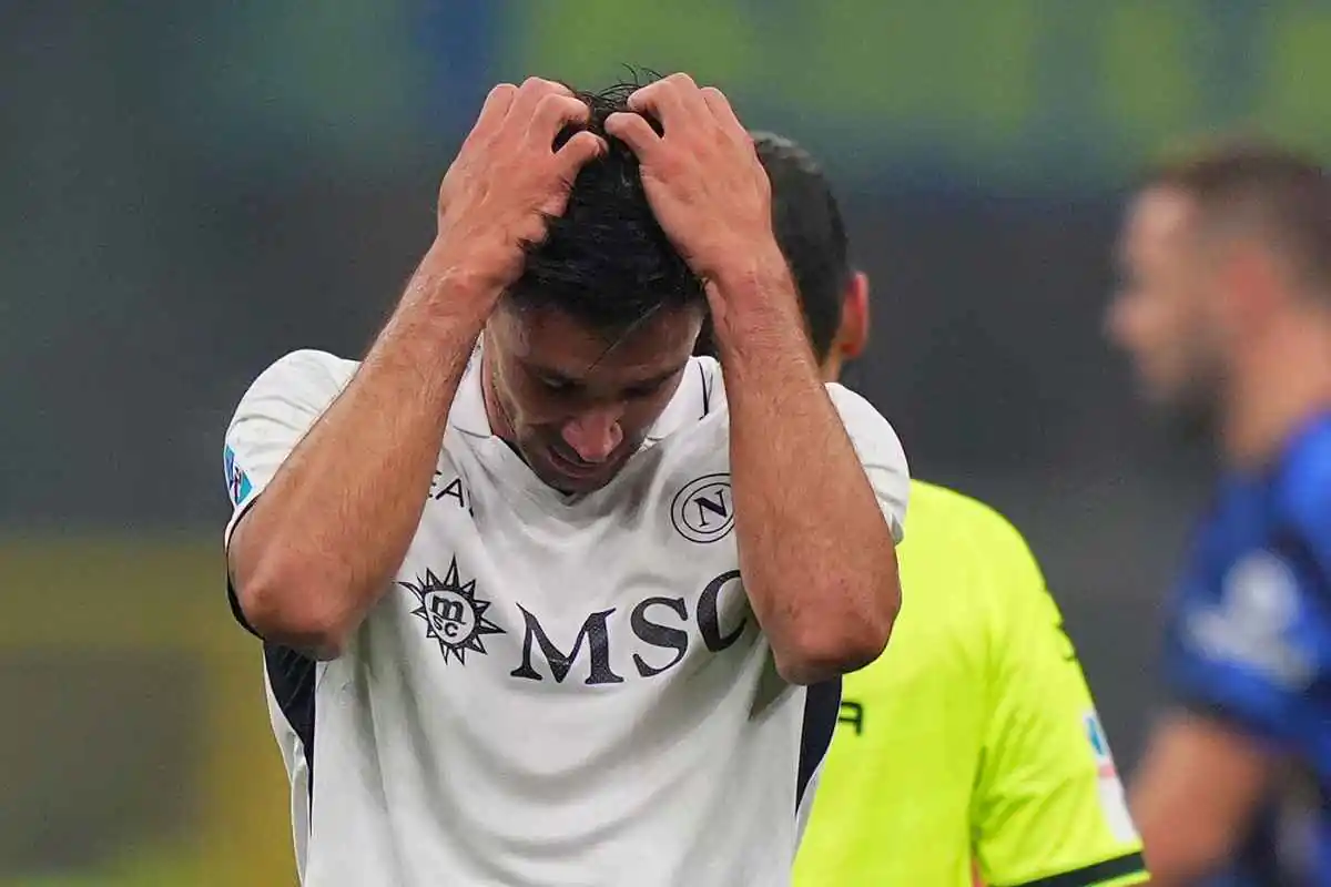 Simeone si dispera dopo una sconfitta del Napoli in campionato, stagione 2024/25