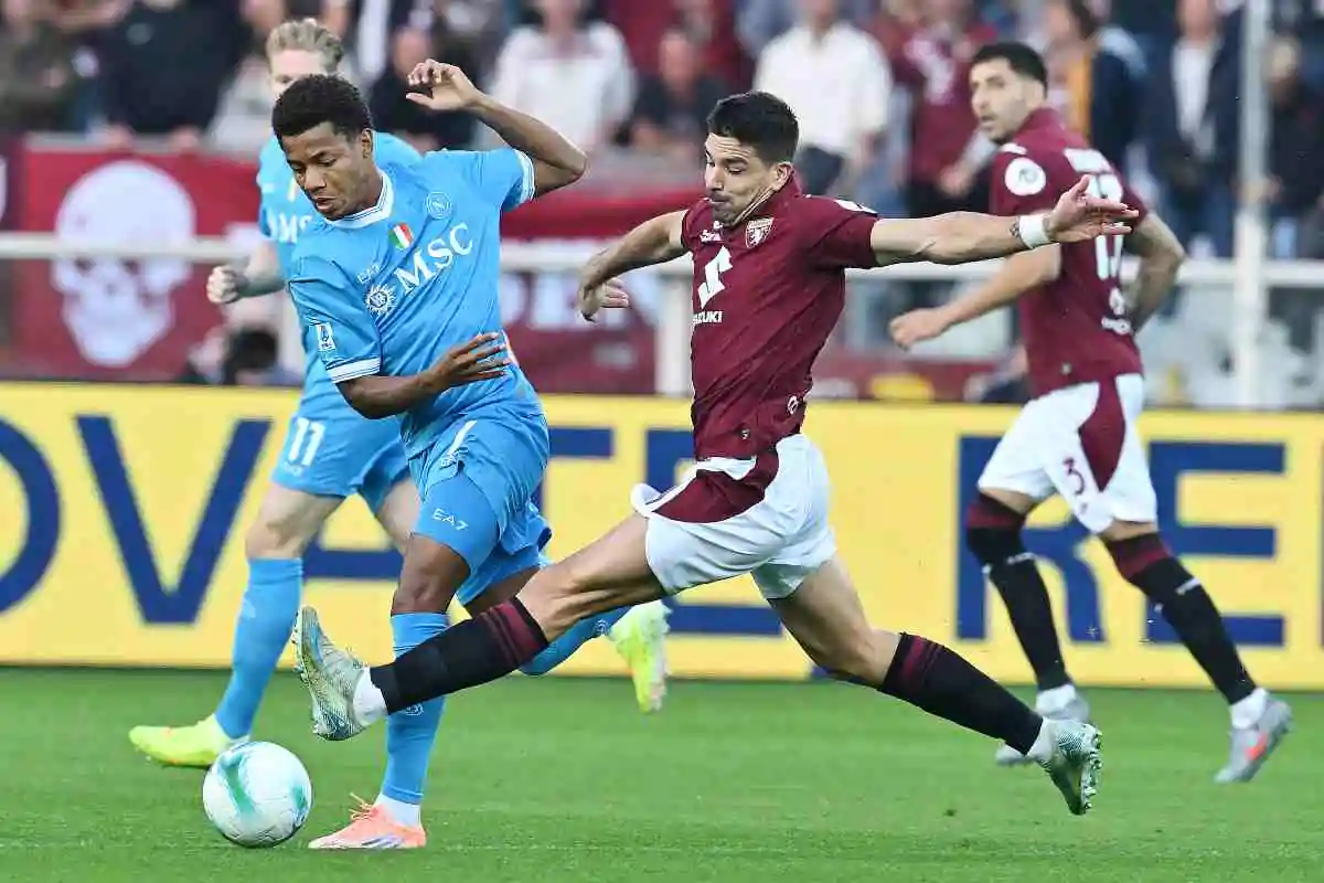 Giovanni Simeone del Torino lotta per il pallone contro il Napoli durante la partita di Serie A, ottobre 2025.