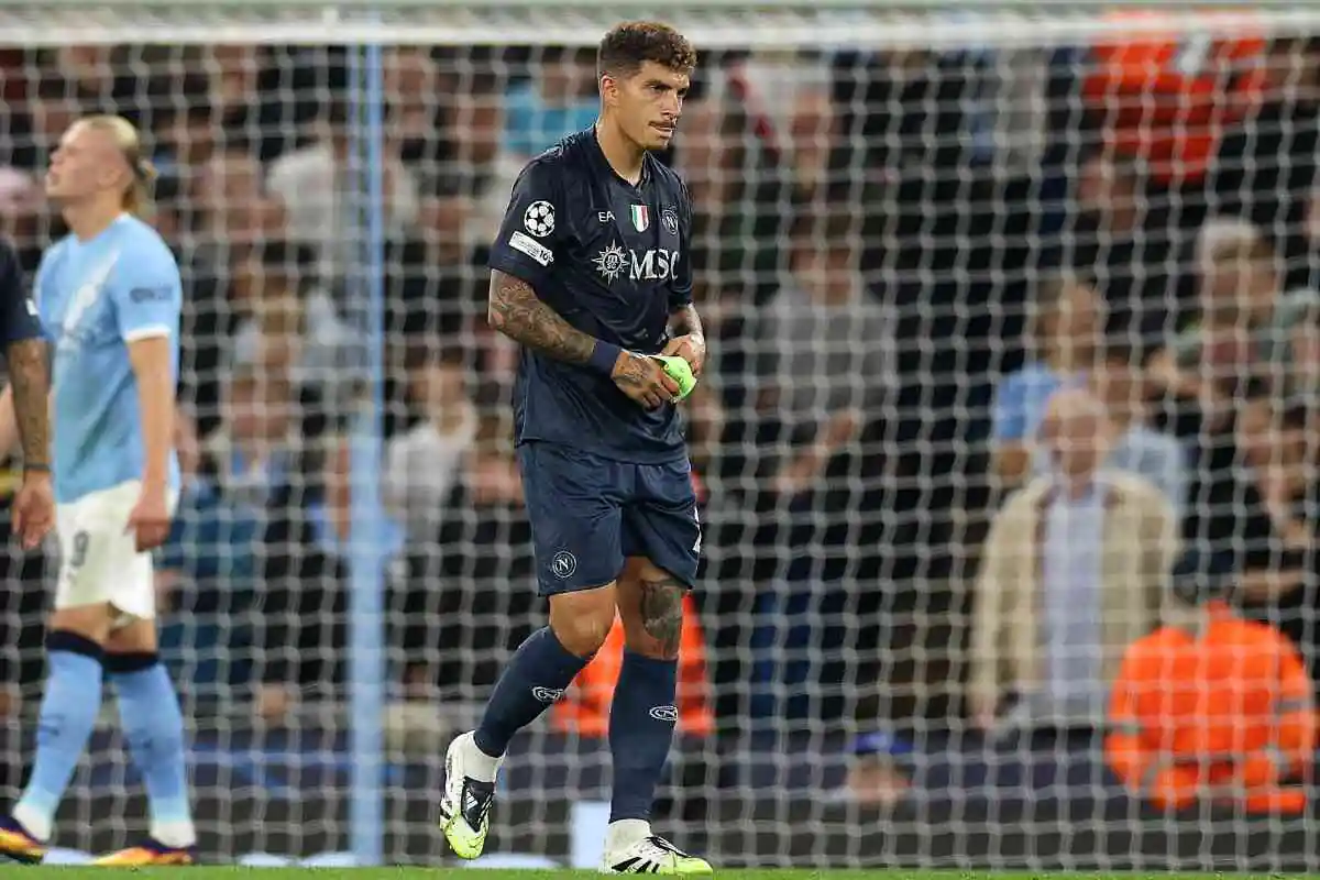 Di Lorenzo lascia il campo dopo l'espulsione contro il Manchester City 2025/2026