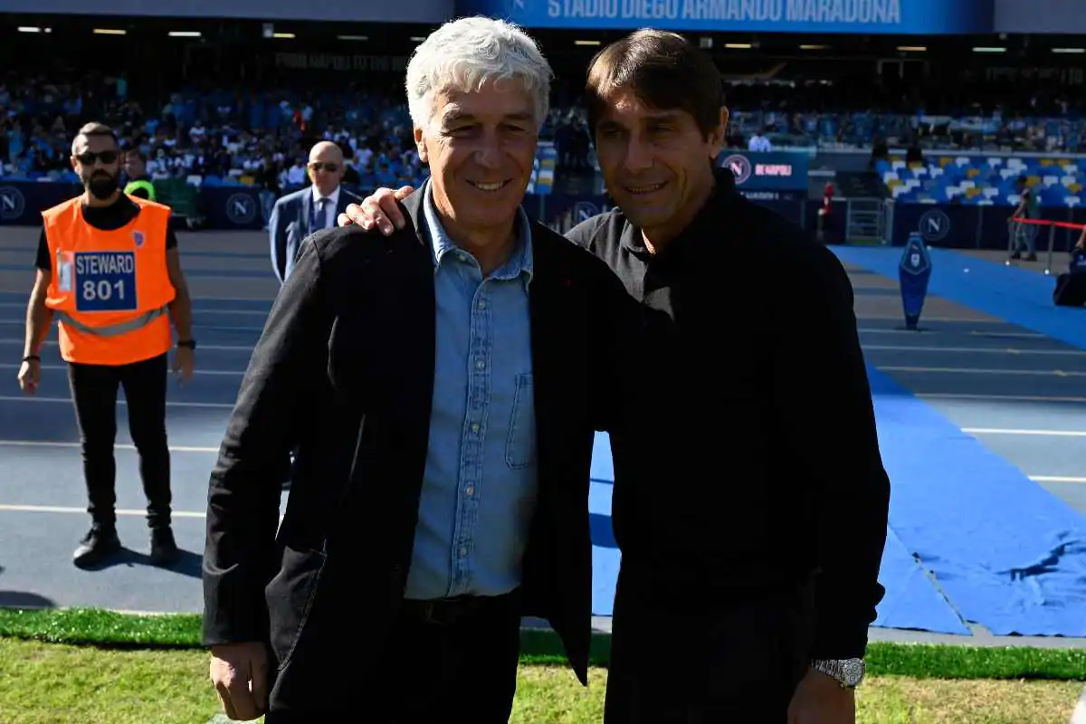 Gasperini e Conte durante le foto prima di Napoli-Atalanta 2024/2025