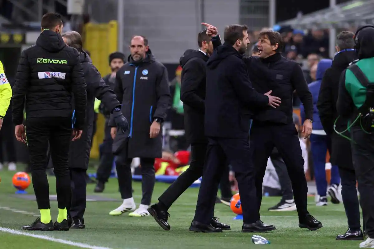 Il tutto è avvenuto intorno al minuto 26′ del secondo tempo, quando Doveri, con l’intervenuto del VAR, ha assegnato un calcio di rigore per fallo di Rrahmani su Mkhitaryan. Da lì in poi Conte ha perso un po’ la lucidità, utilizzando parole offensive verso i direttori di gara, oltre che calciare via un pallone con violenza.