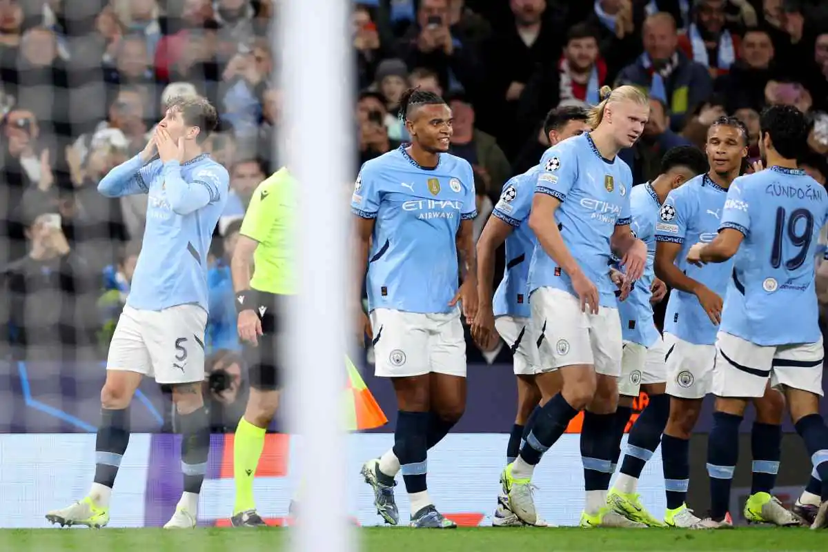 I calciatori del Manchester City festeggiano contro lo Sparta Praga