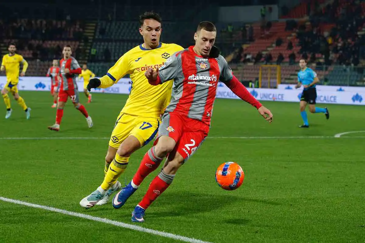 US Cremonese's Filippo Terracciano battle for the ball with Hellas Verona FC's Giovane Santana do Nascimiento during the italian soccer,Serie A match between US Cremonese vs Hellas Verona FC on January 19, 2025 at the Giovanni Zini stadium in Cremona, Italy. ANSA/Davide Casentini