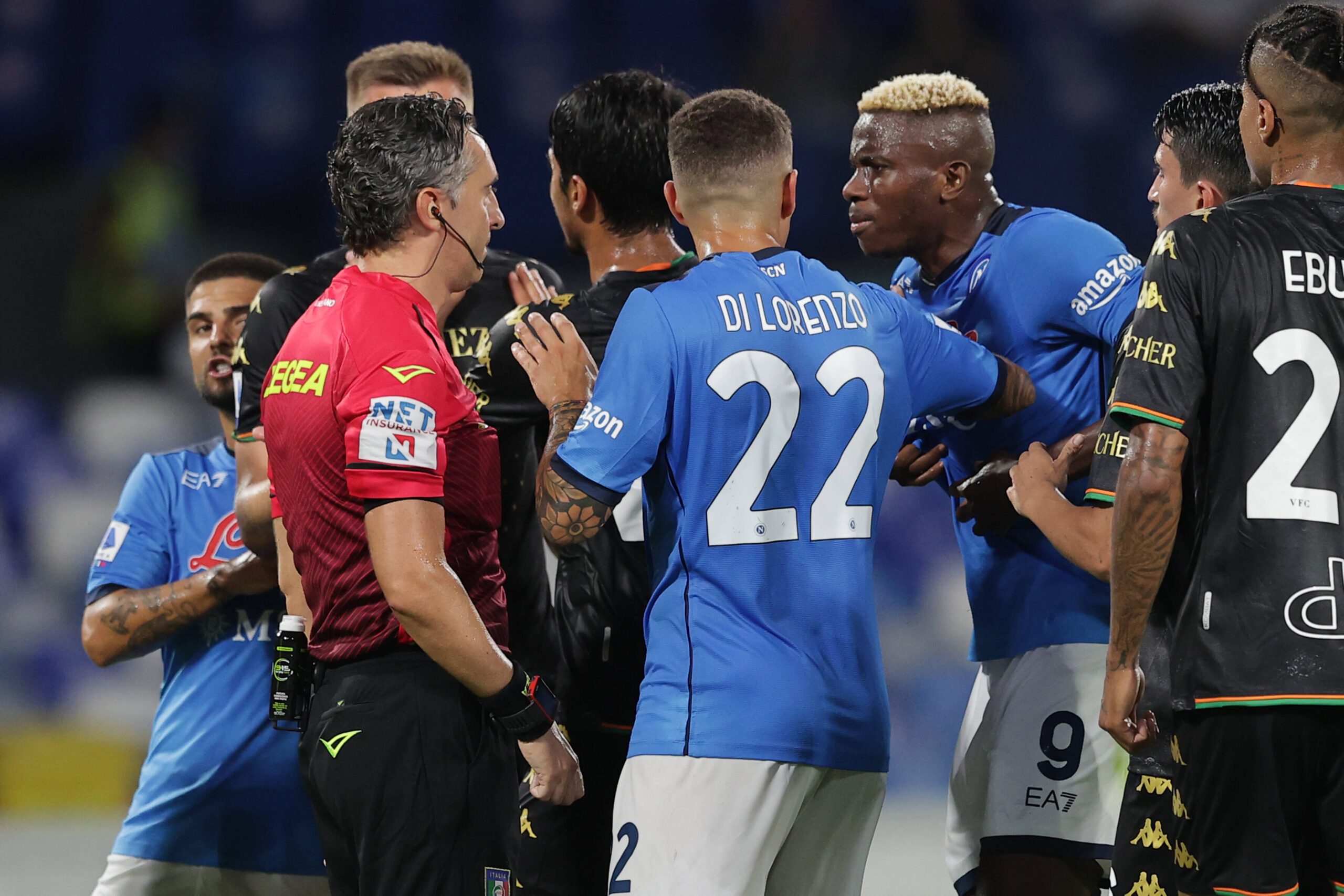 Espulsione Osimhen, dirigenti del Napoli poco convinti: è successo all’intervallo con l’arbitro