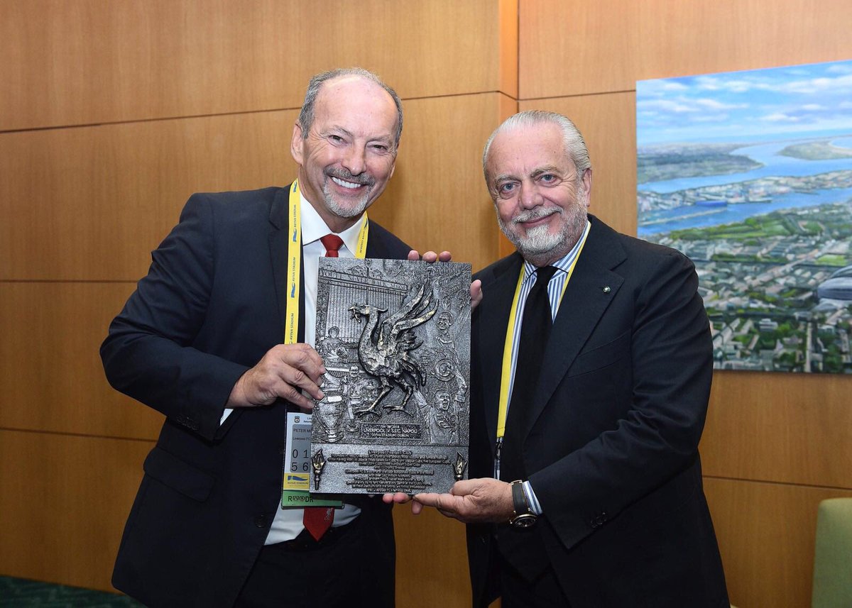 De Laurentiis incontra il CEO del Liverpool: scambio di doni prima dell’amichevole