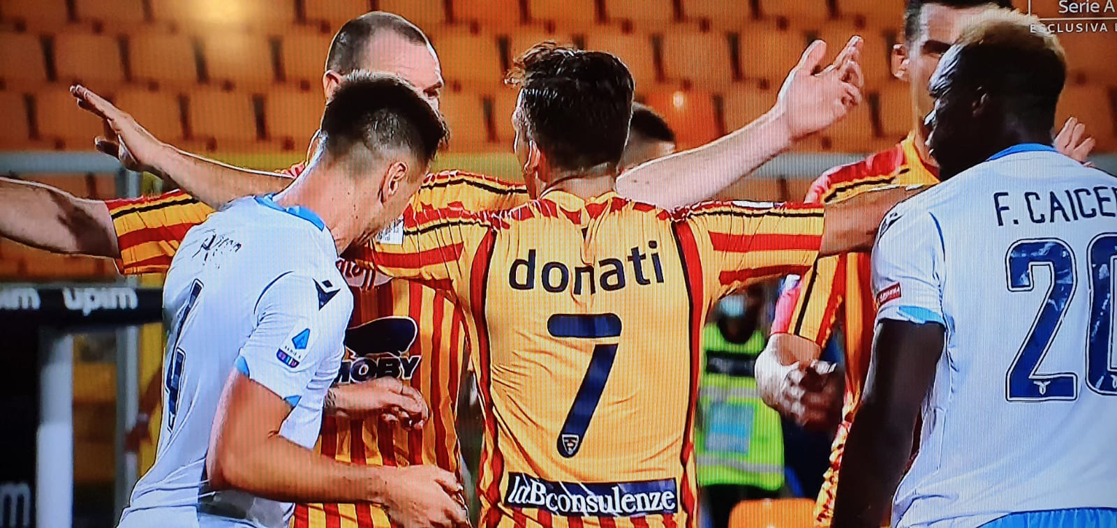 FOTO – Lecce-Lazio, Patric espulso per aver dato un morso a Donati!
