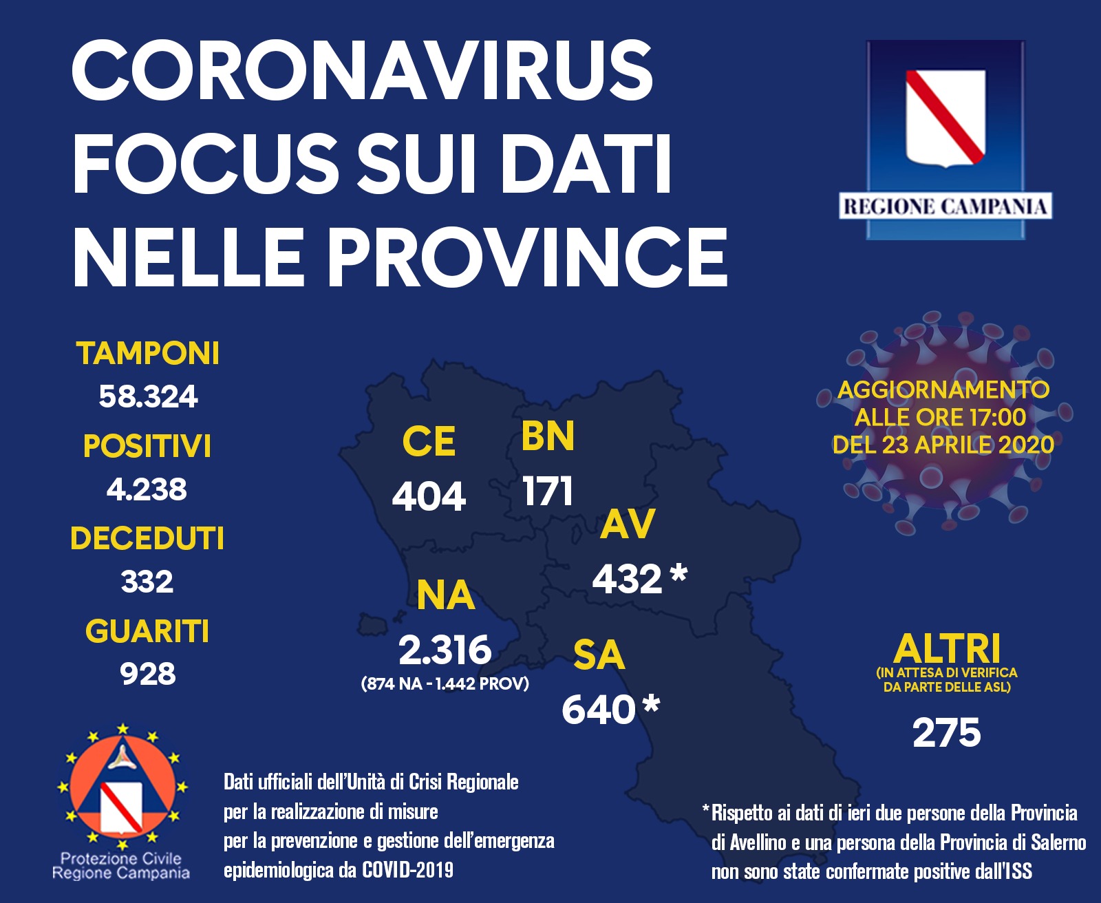 Coronavirus, l’ultimo aggiornamento della Regione Campania: i dati delle province