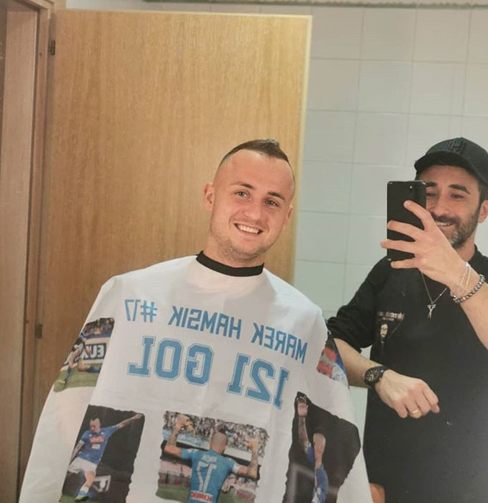 FOTO – Lobotka dall’hair stylist Costantino: “Scusaci Marek, abbiamo messo la tua mantella come buon auspicio”