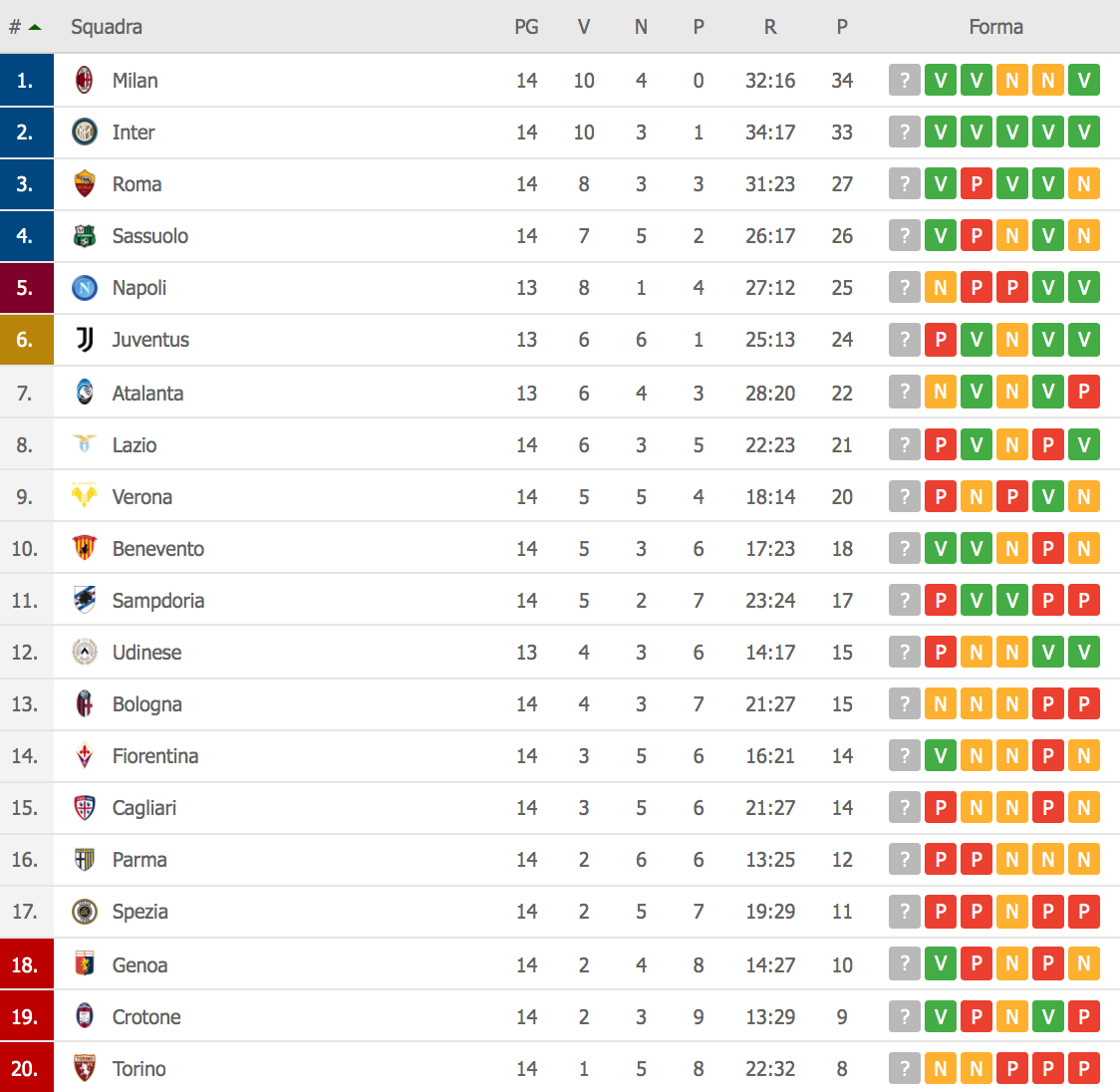 Classifica Serie A: Napoli superato dal Sassuolo e fuori dalla zona Champions