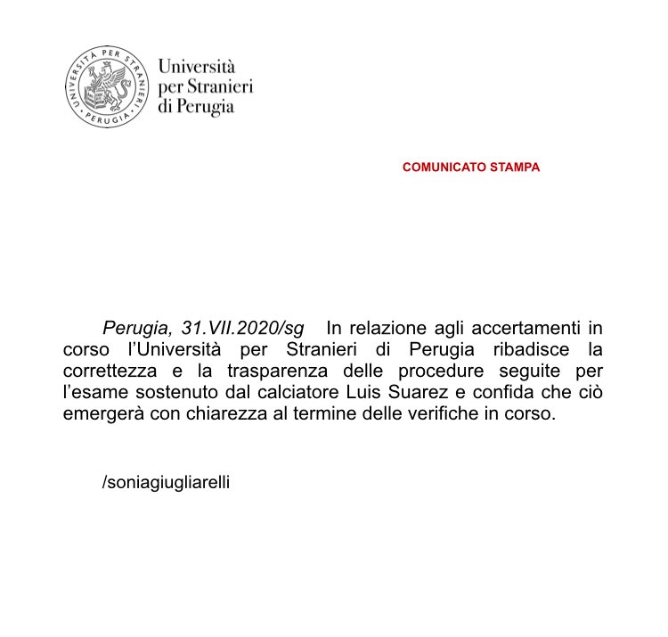 Suarez, il comunicato dell’Università per Stranieri di Perugia: “Esame svolto in correttezza e trasparenza”