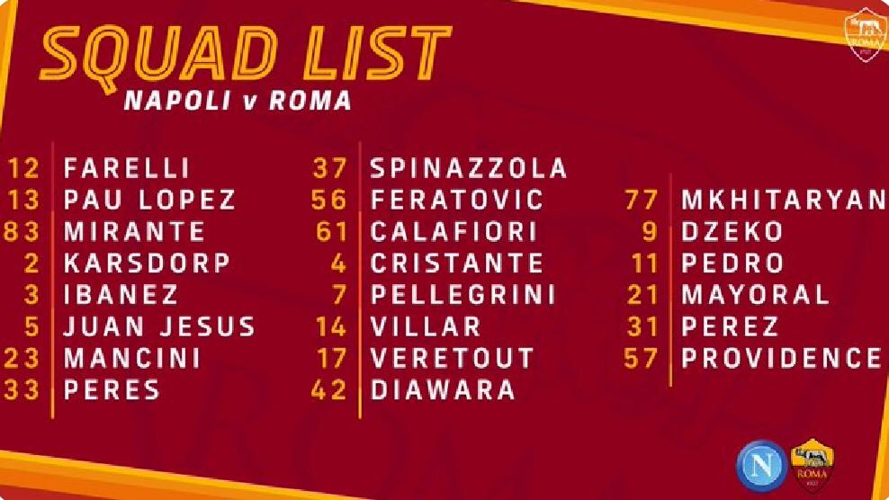 Napoli-Roma, ecco i convocati di Fonseca: recuperato Dzeko, out Smalling
