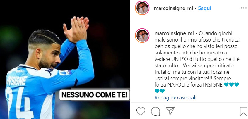 Insigne, il fratello Marco: “Sarai sempre criticato ma con la tua forza ne uscirai sempre vincitore”