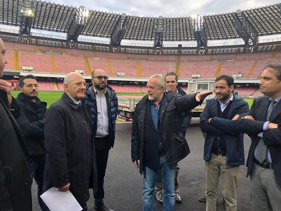 FOTO – Sopralluogo al San Paolo per i maxischermi, presenti ADL, Borriello e De Luca. L’Assessore: “Sarà all’altezza di una grande squadra”