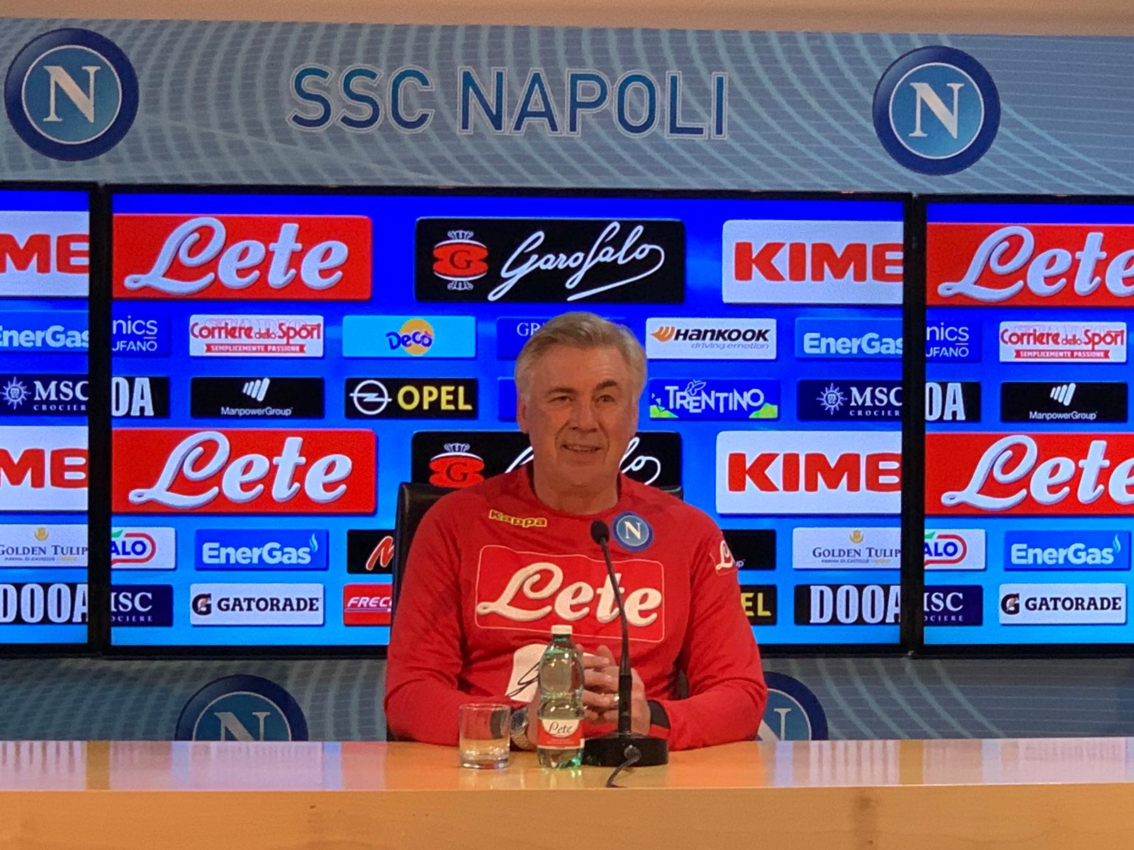 Ancelotti in conferenza: “Domani possiamo vincere. Potrei chiudere la carriera a Napoli”