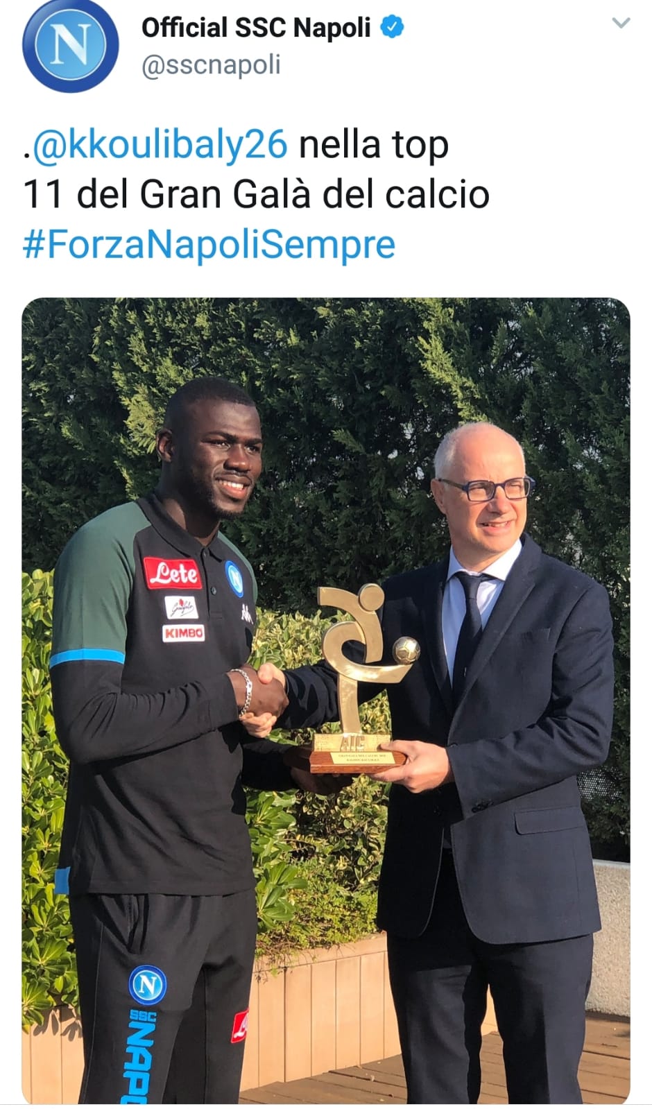 FOTO – Koulibaly nella top 11 al Gran Galà del Calcio: il Napoli lo celebra così