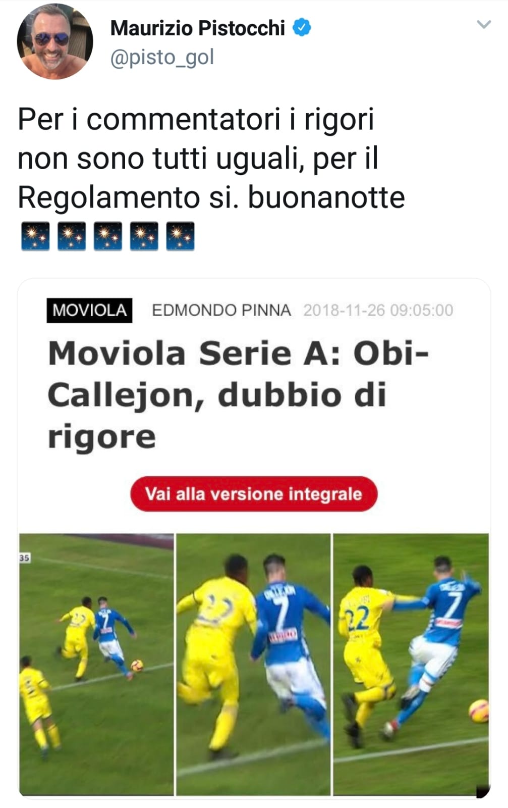 FOTO – Pistocchi torna su Napoli-Chievo: “Per il regolamento i rigori sono tutti uguali”