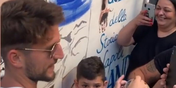 FOTO – Mertens firma il murales ai Quartieri Spagnoli: Dries accolto da centinaia di tifosi