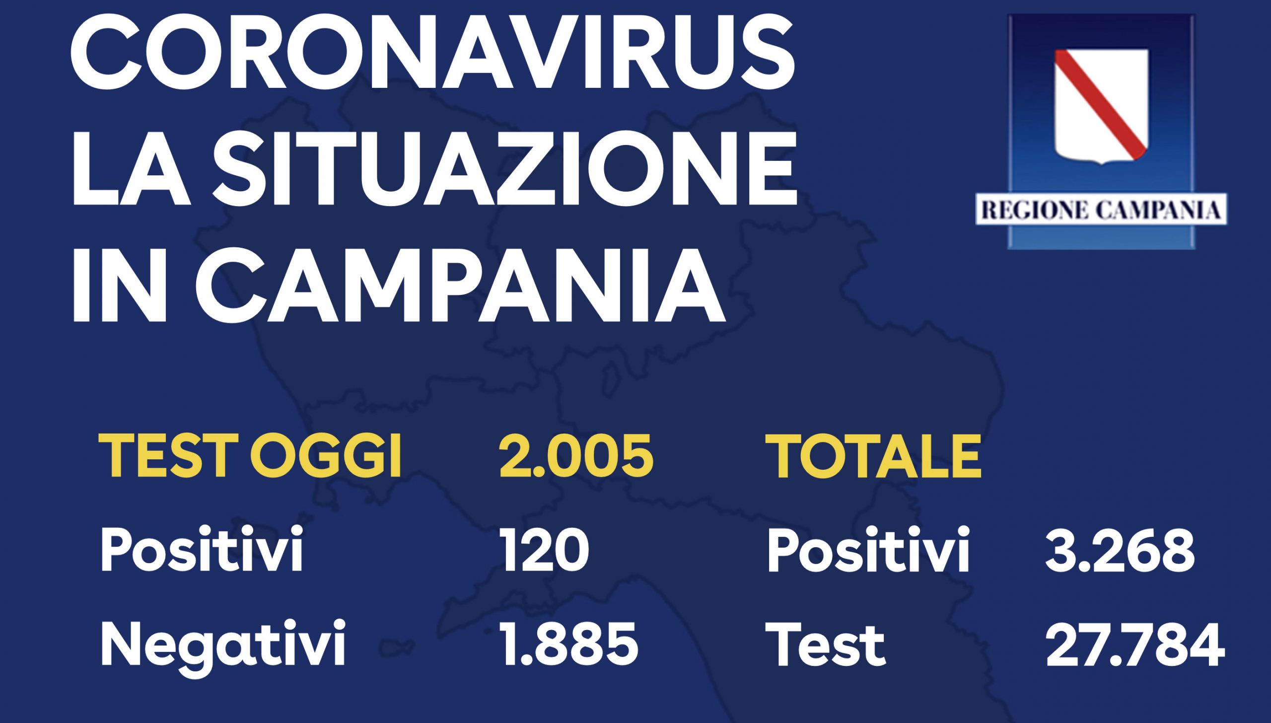 Coronavirus, il bollettino di oggi in Campania: oltre 2000 tamponi effettuati, 120 sono risultati positivi