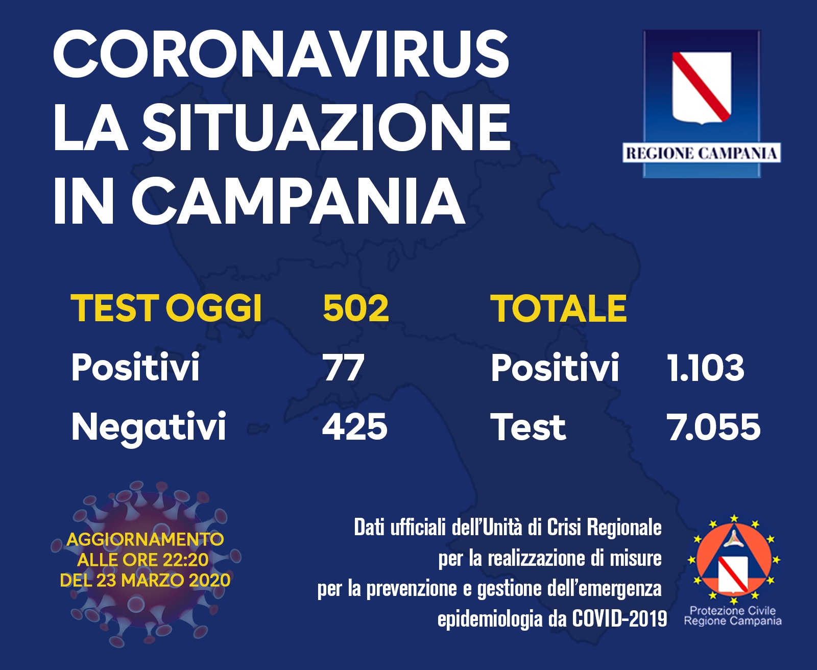 Coronavirus, il bollettino ufficiale della Regione Campania: effettuati oltre 500 tamponi, 77 nuovi contagi