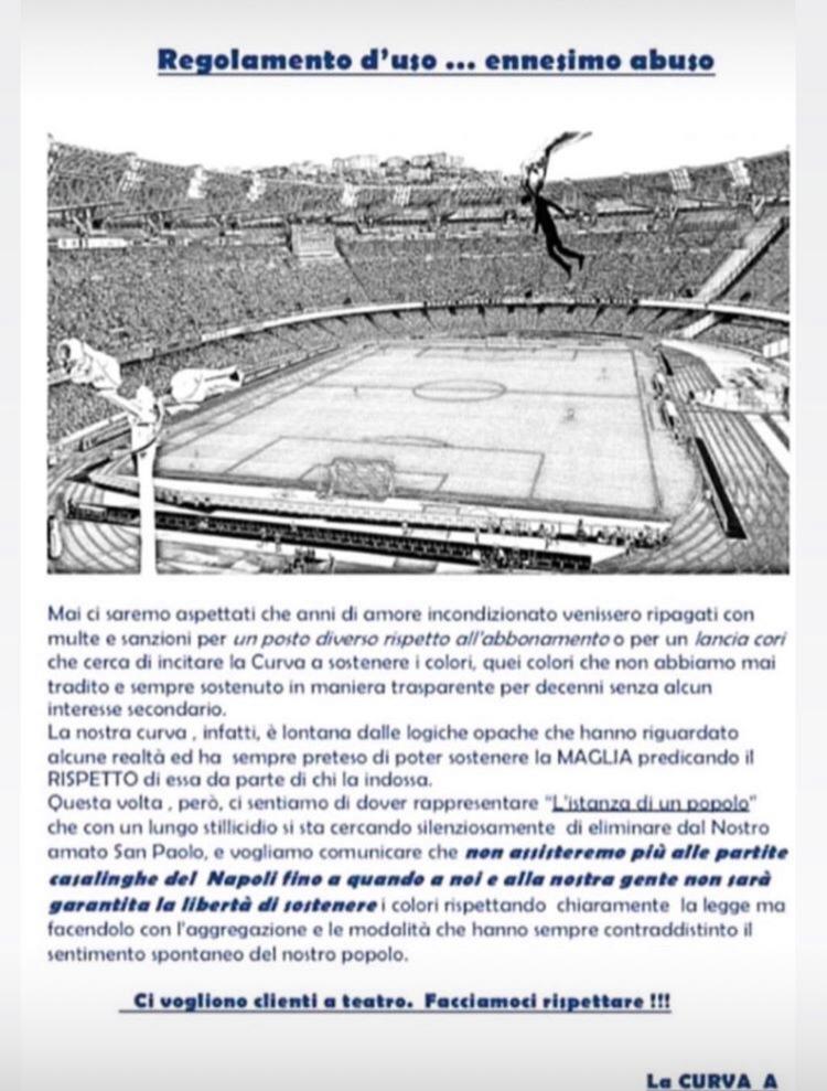 FOTO – Ultras Curva A, la protesta: “Non saremo allo stadio finché non saremo liberi di sostenere”