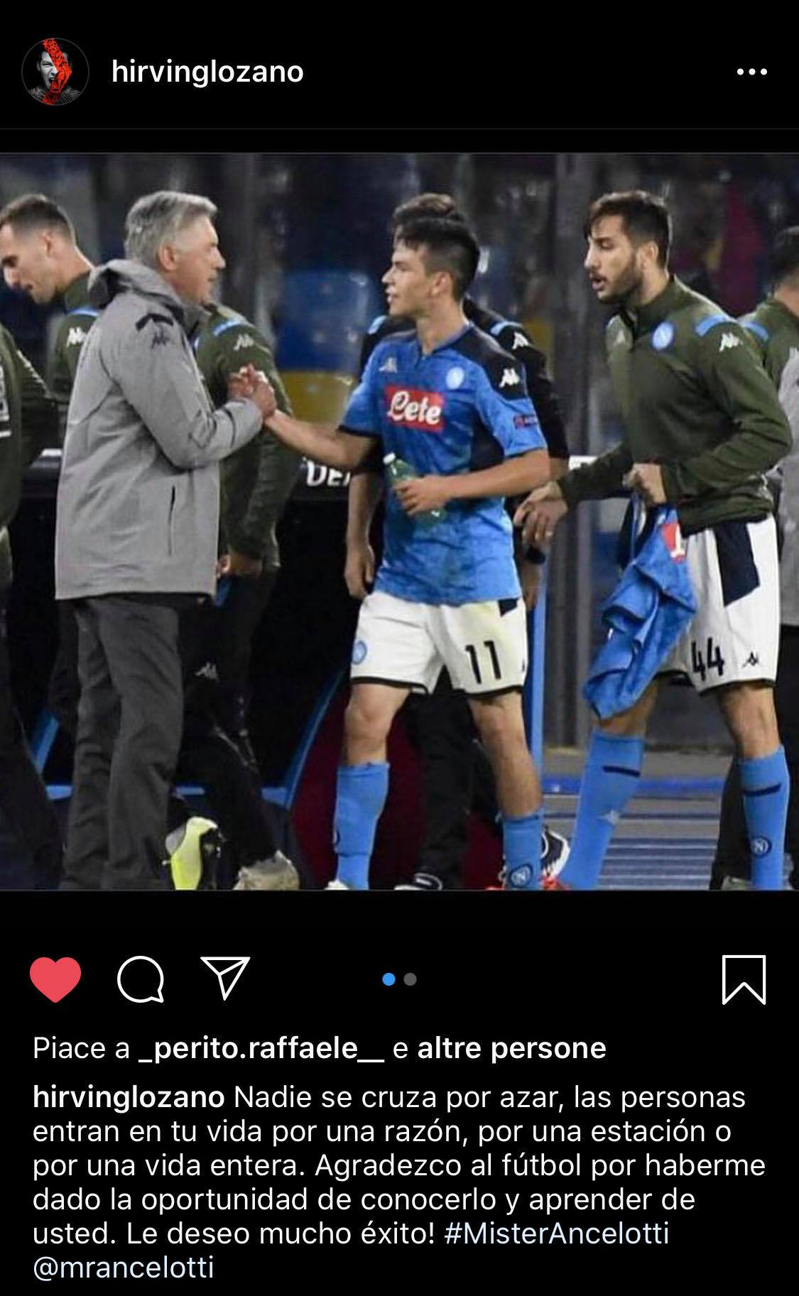 Il saluto di Lozano ad Ancelotti: “Ringrazio il cielo per avermi dato la possibilità di conoscerti”